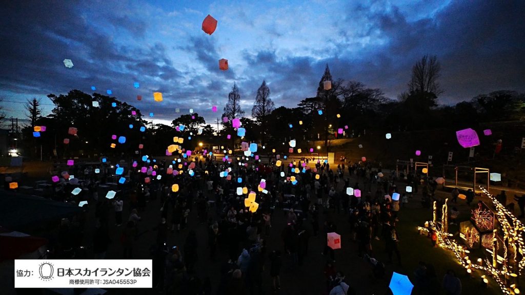 今年は従来の竹灯り、行灯に加えて初となる試みとして、幻想的に夜空を彩る「スカイランタン®」の打ち上げを開催します。